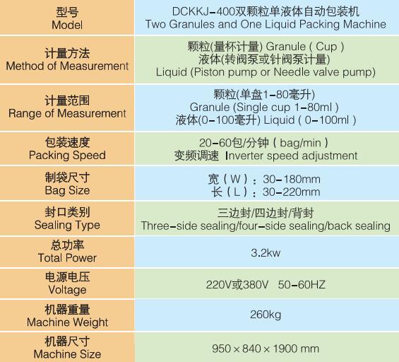 DCKKJ-400雙顆粒單液體三列自動包裝機(jī)
